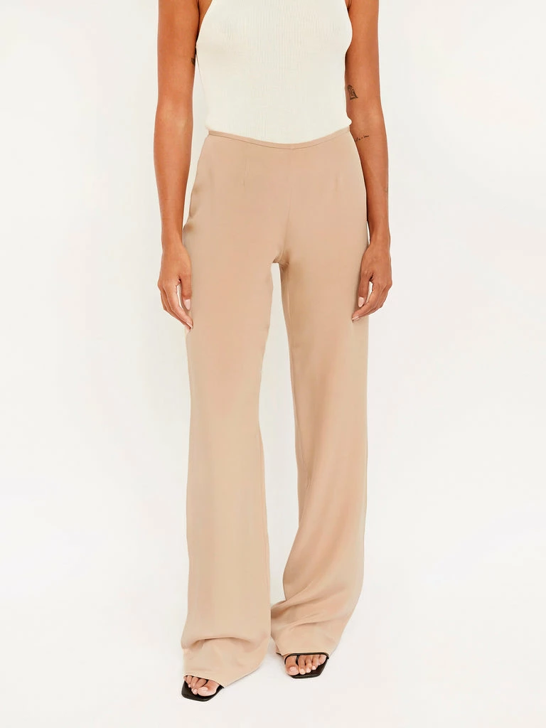 The Silk Crepe Relaxed Pant by Australian label BEARE PARK are a staple pant for your wardrobe. Featuring a high-rise waist with a straight leg silhouette and a concealed side zip. Made out of a luxurious tan silk.