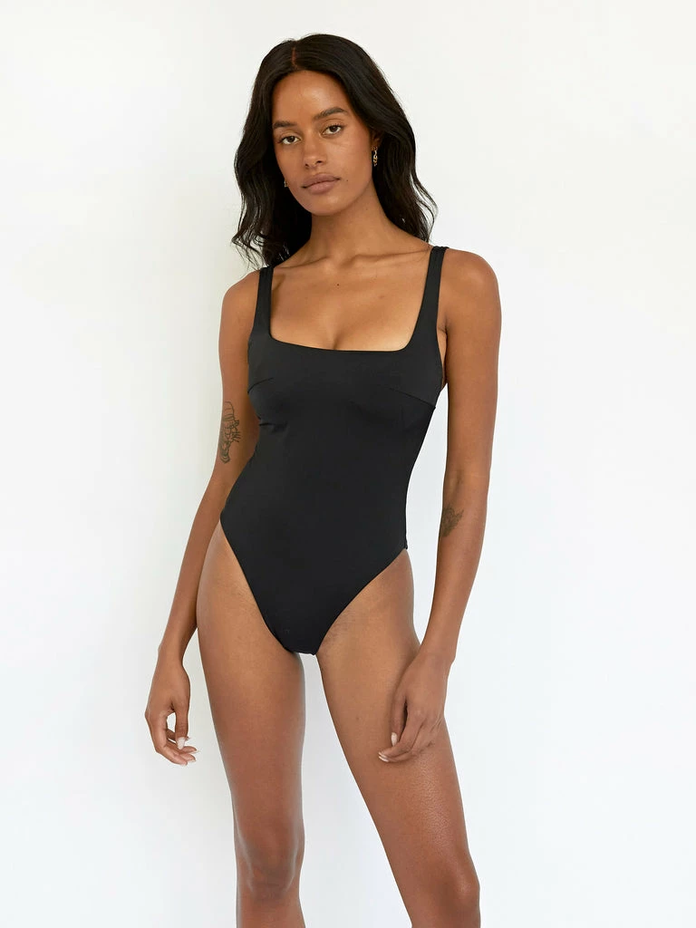 The Square Swimsuit by Form and Fold is a high cut flattering one piece. Featuring a square neckline and a high cut fit, you’ll be reaching for this swimsuit all summer long.