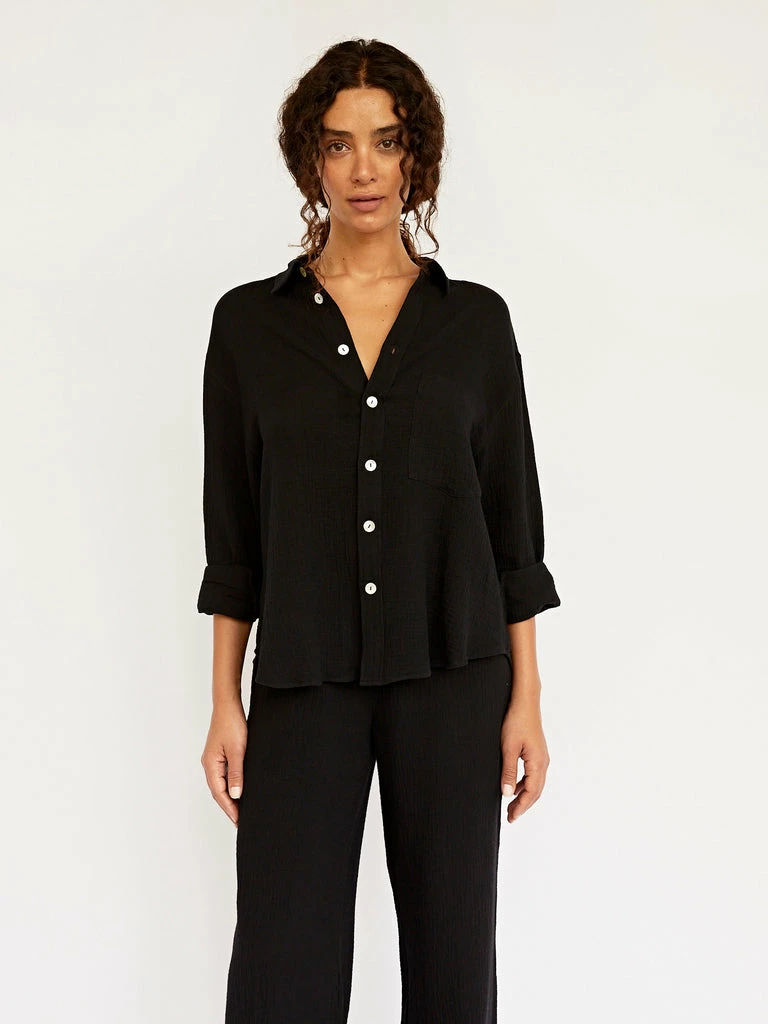 The Resort Shirt by Australian label Maison Essentiele will be your go-to throw on shirt. This long sleeve shirt features a button front and is made from a soft black waffle cotton for ultimate comfort.