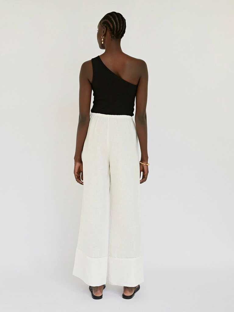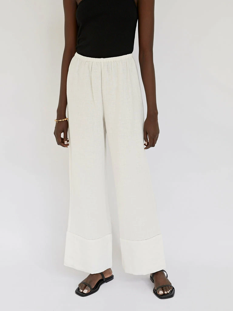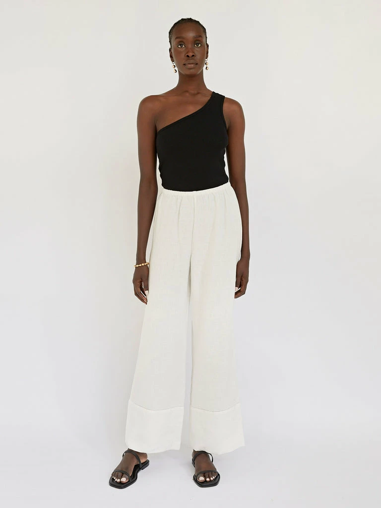 The Etta Pant by Marle are a wide-leg pant that sit just above full-length. These pants feature an elasticated waistband and an oversized cuff finished creating a relaxed look for summer wear.