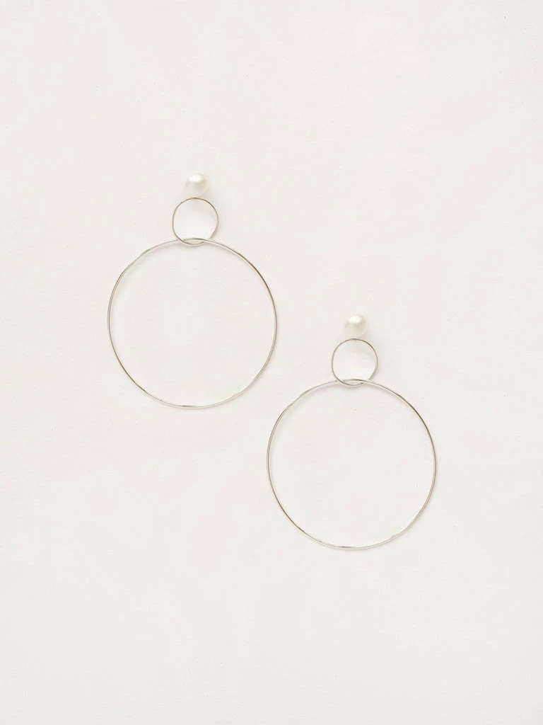 The Double Drop Hoops with Pearls by Natasha Schweitzer are a subtle statement piece to elevate any outfit. These earrings feature a freshwater pearl stud and two thin drop hoops that fall delicately beneath them. These earrings are handcrafted in Brisbane, Australia from sterling silver and unique Freshwater pearls.