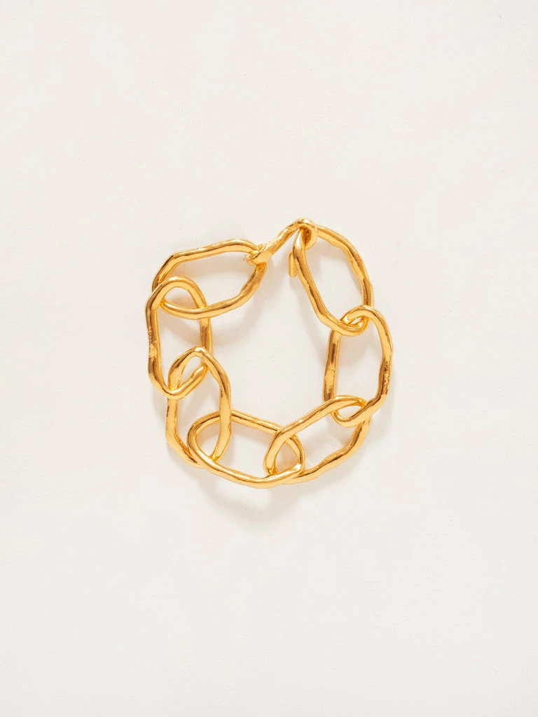 The Classic Link Bracelet 003 by Australian jewellery label Released From Love is a classic bracelet with an element of everyday wear and statement. Featuring seven abstract links, bound together with a small link. Made from 24ct gold vermeil.