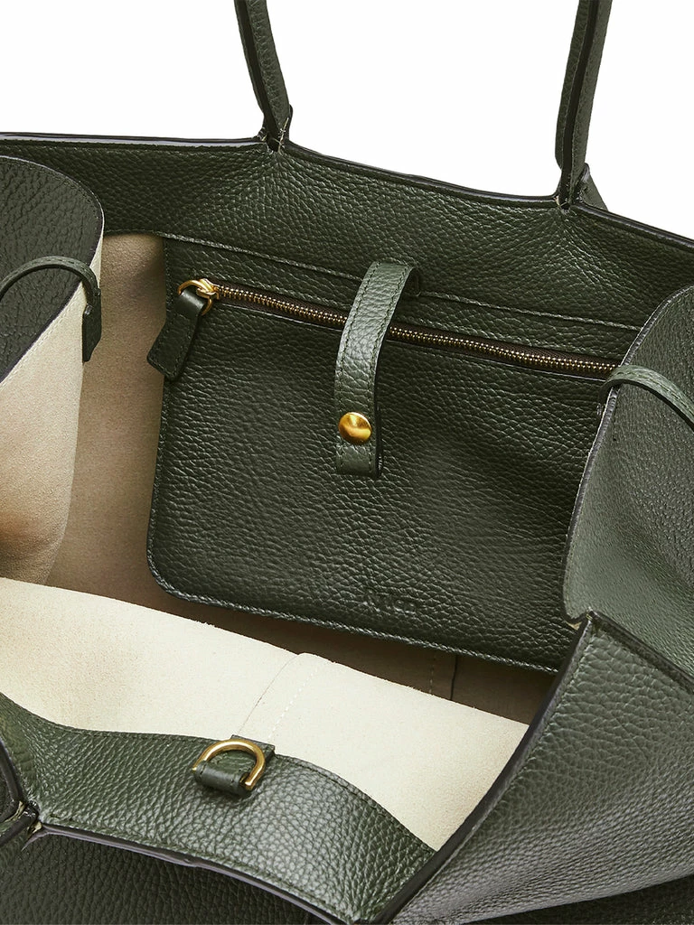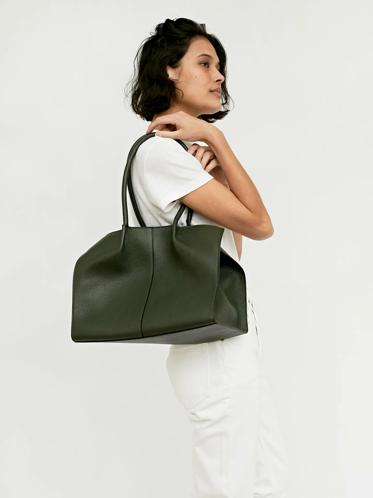 The 7.40 Soft Grained Large Tote in Forest green by Australian luxury accessories brand Rylan will be your go-to bag this season, and the seasons to come. With a magnetic fastening and internal zipped leather pocket, this tote features side leather ties and is made in northern Italy from 100% soft grained Italian cow leather.