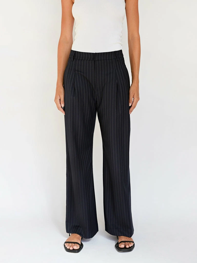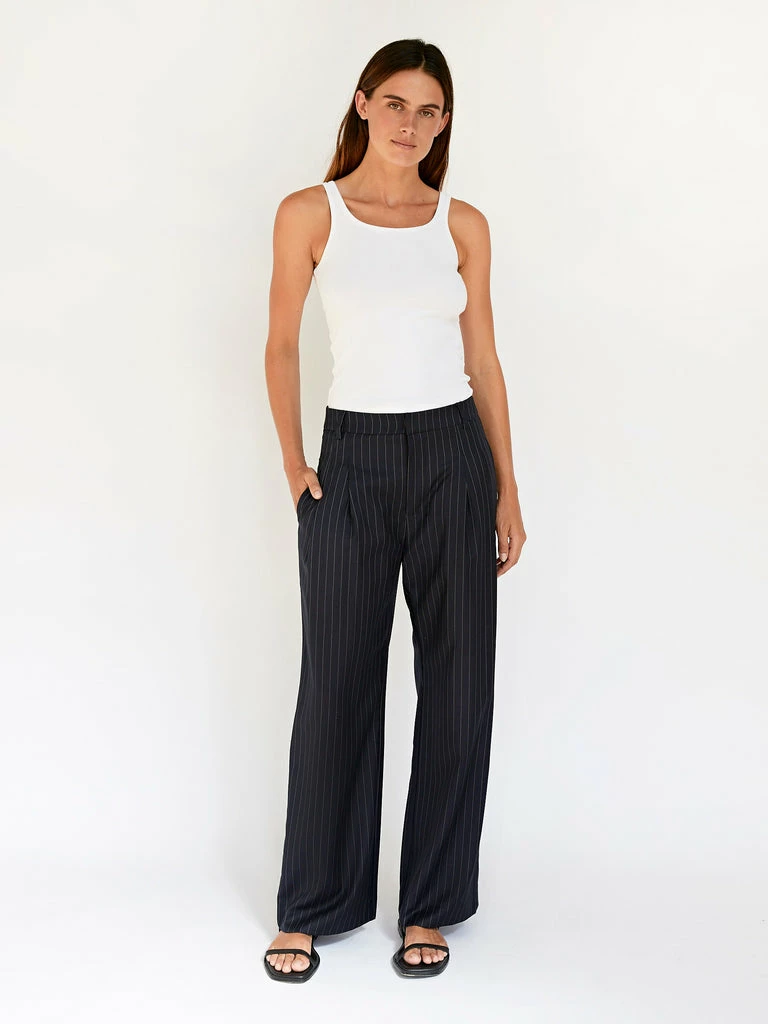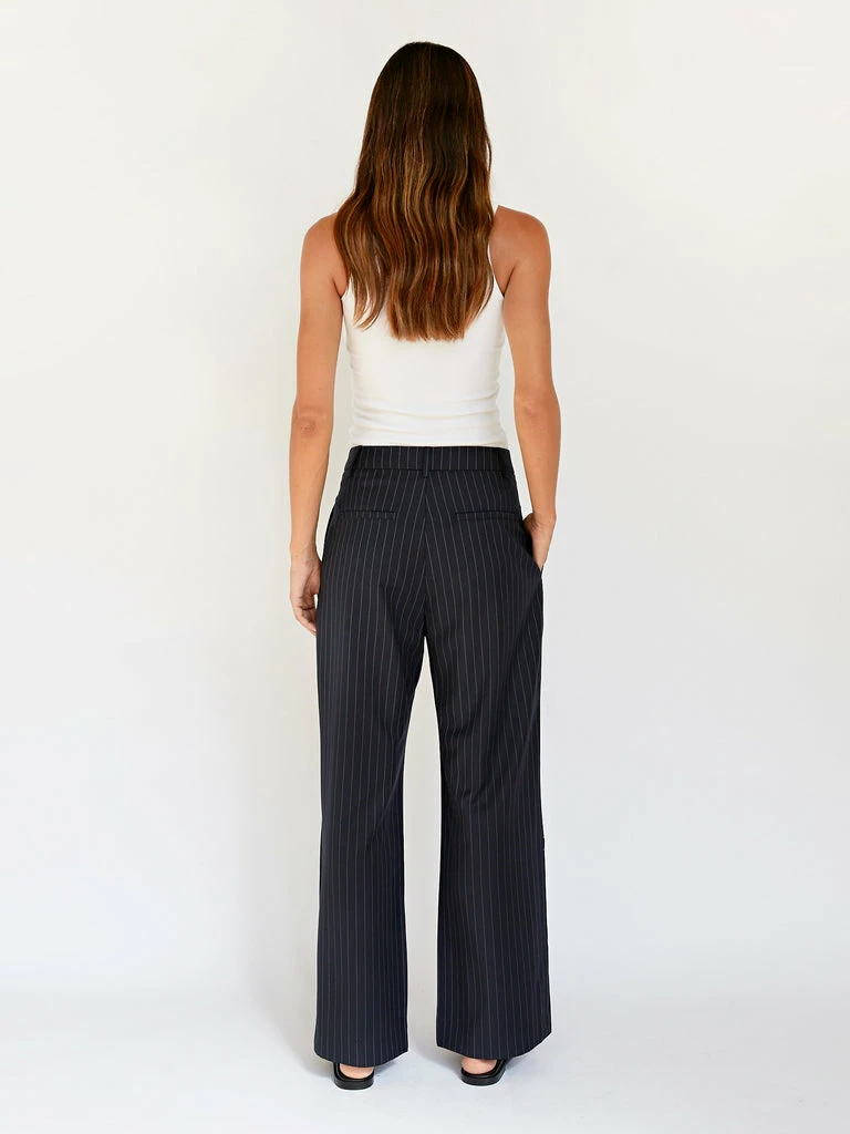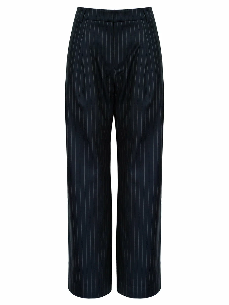 The Low Rise Mapplethorpe Trouser by Wynn Hamlyn are a tailored, low rise trouser in a classic navy pinstripe. Featuring subtle front pleats and belt loops and made in a lightweight 100% wool.